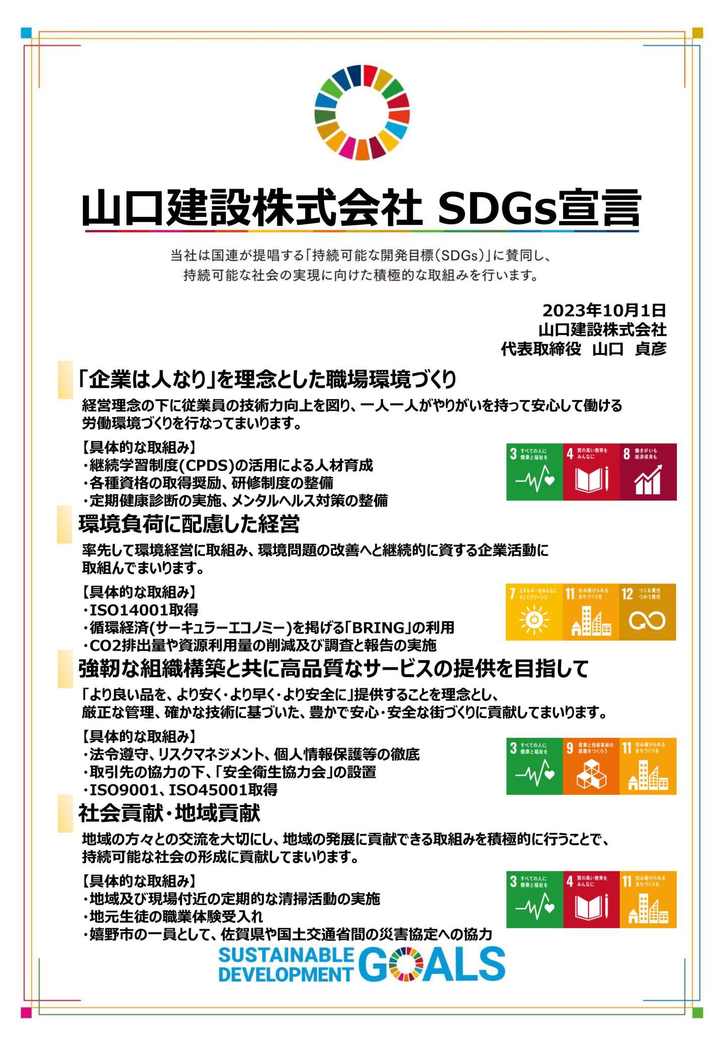 山口建設株式会社は持続可能な開発目標(SDGs)に賛同し、SDGsを推進しています。